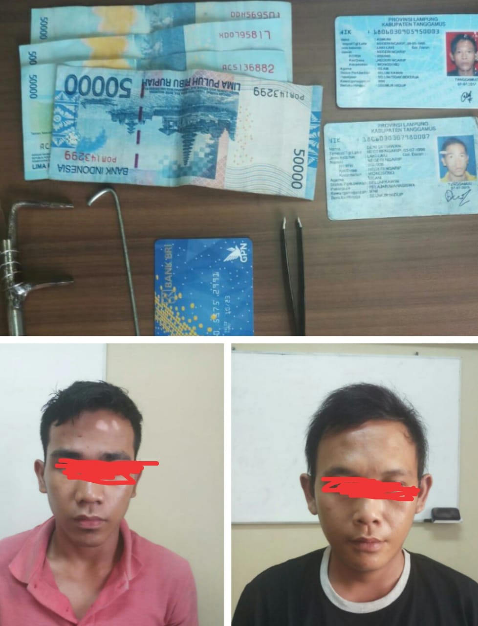 Berkat informasi dari Bank BRI, Tim Resmob Sat Reskrim Polres Serang, Polda Banten akhirnya berhasil menggagalkan kedua pelaku. Setalh dilakukan penangkapan, Petugas Tim Resmob Polres Serang kemudian melakukan penggeledahan badan dan didapati pelaku membawa alat cungkil berupa pinset serta uang hasil kejahatan, dimana setelah diinterogasi petugas, pelaku mengakui perbuatanya tersebut, ujar AKBP Edy Sumardi.