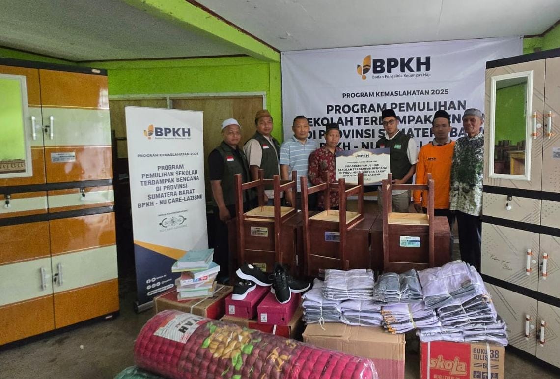 Kabupaten Solok – Badan Pengelola Keuangan Haji (BPKH) bekerja sama dengan NU CARE-LAZISNU menyalurkan bantuan bagi pondok pesantren yang terdampak bencana hidrometeorologi yang melanda wilayah Sumatera Barat, khususnya di Kabupaten Solok beberapa waktu lalu.