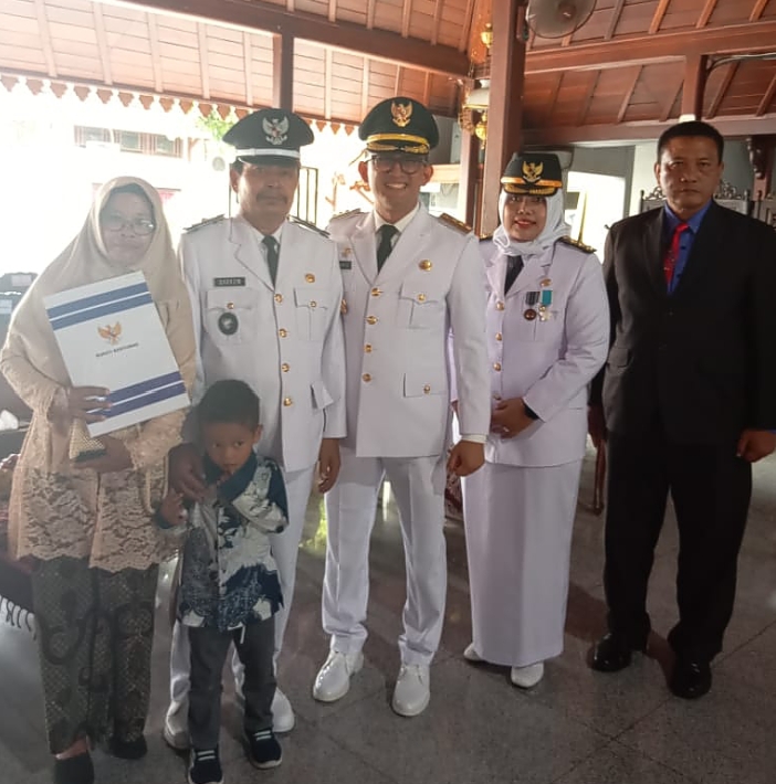 Kepala desa Dermaji Darkum beserta Istri, mendapat ucapan selamat dari Camat Lumbir, Susanti Tri Pamuji. S.STP,M.Si. dan PJ Bupati Banyumas Hanung Cahyo Saputro, S. STP, M. Si. Di pendopo Si Panji Banyumas. Selasa ( 31/10/2023 )