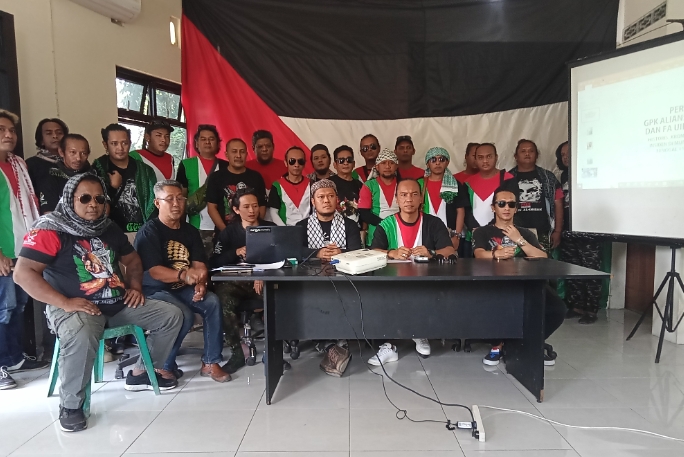 Harianindonesia.id – Magelang, Komadan Gerakan Pemuda Ka’bah ( GPK ) Aliansi Tepi Barat, Pujiyanto beserta jajarannya dan ketua FAUIB Jateng – Jogyakarta, Anang Imam Muhdin beserta jajarannya mengadakan konferensi pers di kantor GPK Aliansi Tepi Barat, Magelang. Pada, Kamis ( 2/11/2023 ).