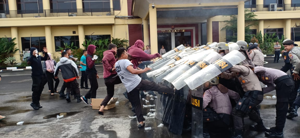 Rangkaian kegiatan latihan pengendalian massa ini diawali dengan upaya pengamanan unjuk rasa oleh beberapa masyarakat yang menyampaikan aspirasi. Ketika massa merasa bahwa penyampaian aspiranya tidak digubris oleh Badan Pengawas Pemilu (Bawaslu), tiba-tiba situasi berubah memanas. Pihak massa mulai melempari Polisi yang melakukan pengamanan. Lintas ganti dari dalmas awal sampai dalmas lanjutan tak’ terelakan. Hingga akhirnya massa dibubarkan secara paksa oleh petugas.