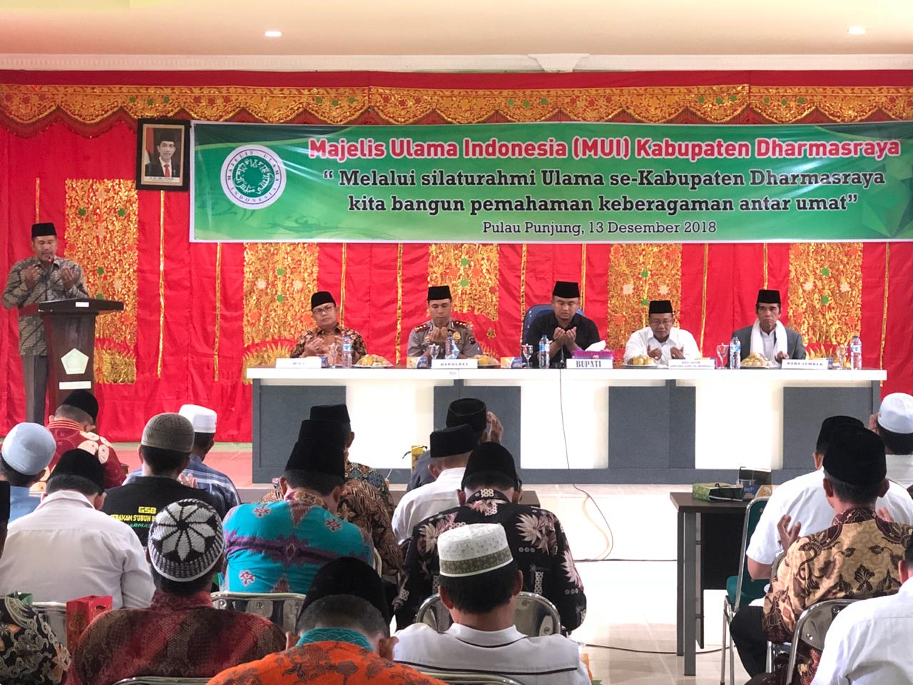 Demikian inti dari acara pertemuan silaturrahim para ulama se Dharmasraya, yang digelar oleh Majelis Ulama Indonesia (MUI) Kabupaten Dharmasraya, di Gedung Sekber KUB Kantor Kementerian Agama Dharmasraya, Kamis (13/12) yang di hadiri oleh Bupati Dharmasraya, Sutan Riska Tuanku Kerajaan, Kapolres Dharmasraya AKBP Imran Amir dan Ketua MUI Kabupaten Dharmasraya, H. Aminullah Salam, Kakan Kemenag Dharmasraya serta narasumber dari UIN Imam Bonjol Padang, Prof. Dr. Asasri Warni serta unsur ulama Kabupaten Dharmasraya.