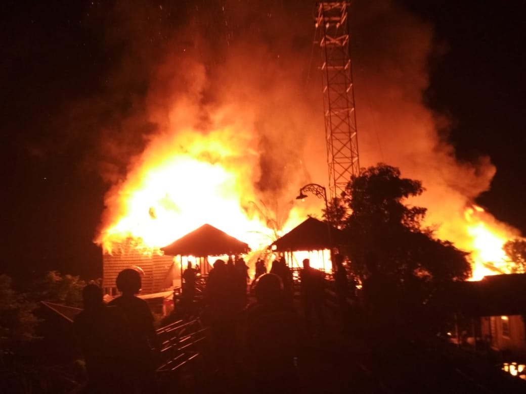 “Dalam peristiwa tersebut sedikitnya ada sepuluh rumah, tiga cape dan satu barak yang ikut terbakar,” ucap Kapolres.