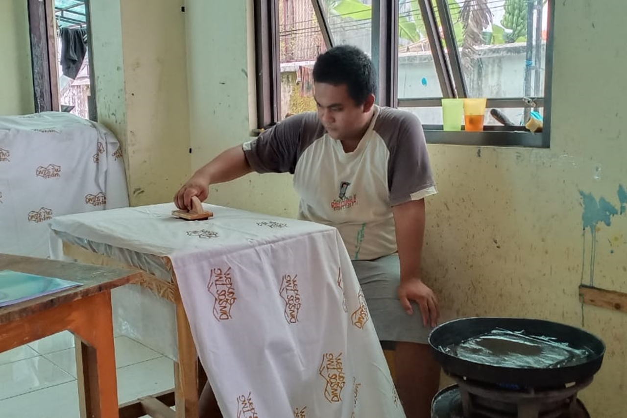 “Saya sering diajak ke _Sheltered Workshop_ Peduli (SWP) untuk mengisi materi sebagai pengajar batik. Selain itu saya juga senang karena mendapatkan uang untuk modal usaha kerajinan batik di kampung halaman,” ujar pria asal Gunung Kidul tersebut.