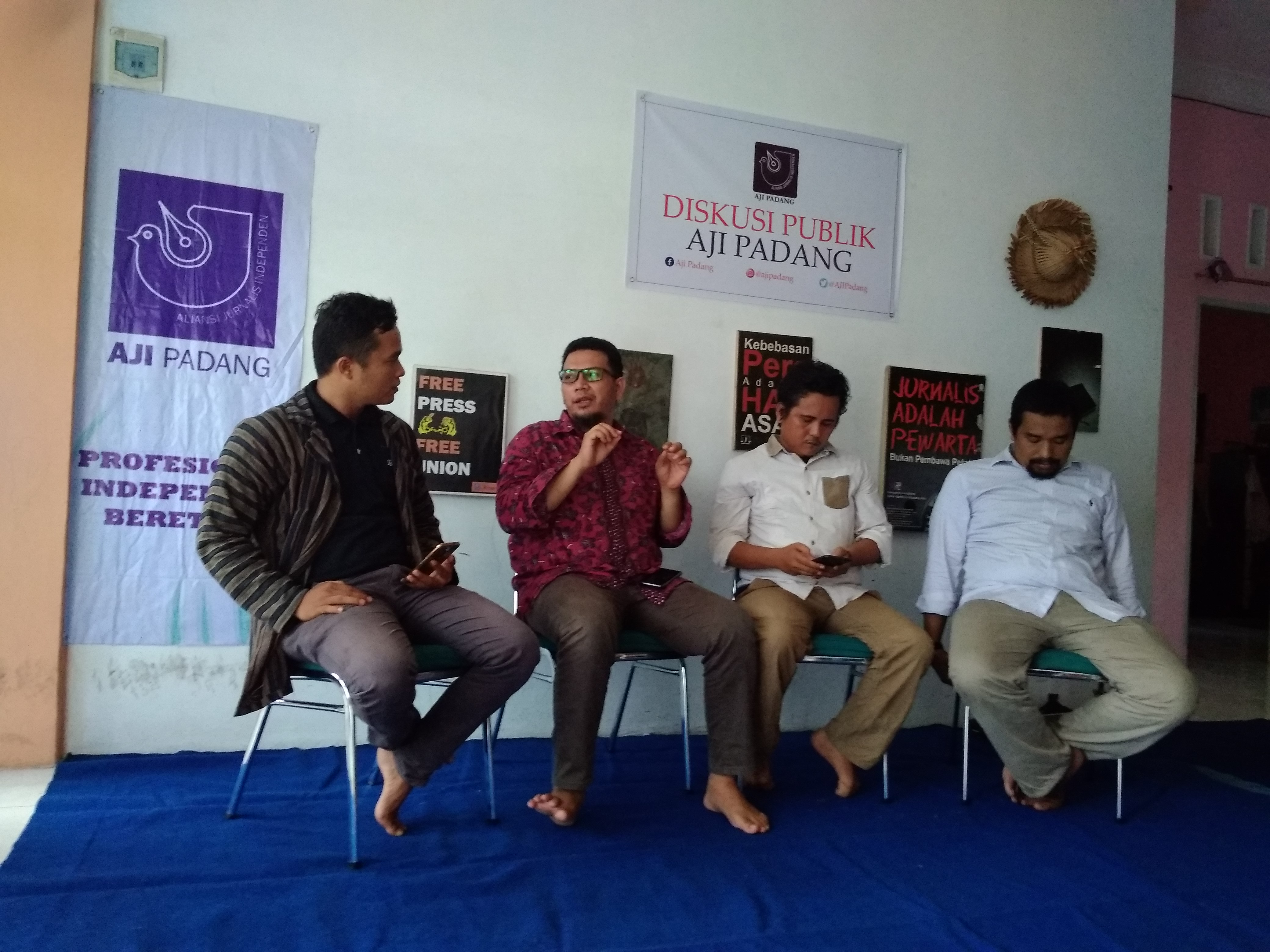Dalam diskusi yang dipandu Sekretaris AJI Padang, Andika D Khagen tersebut, hadir sebagai pembicara, Ahli Hukum Tata Negara Charles Simabura dari Pusat Studi Konstitusi (Pusako), Pegiat Kemerdekaan Pers Roni Saputra, serta Ketua Bidang Advokasi AJI Padang Aidil Ichlas.