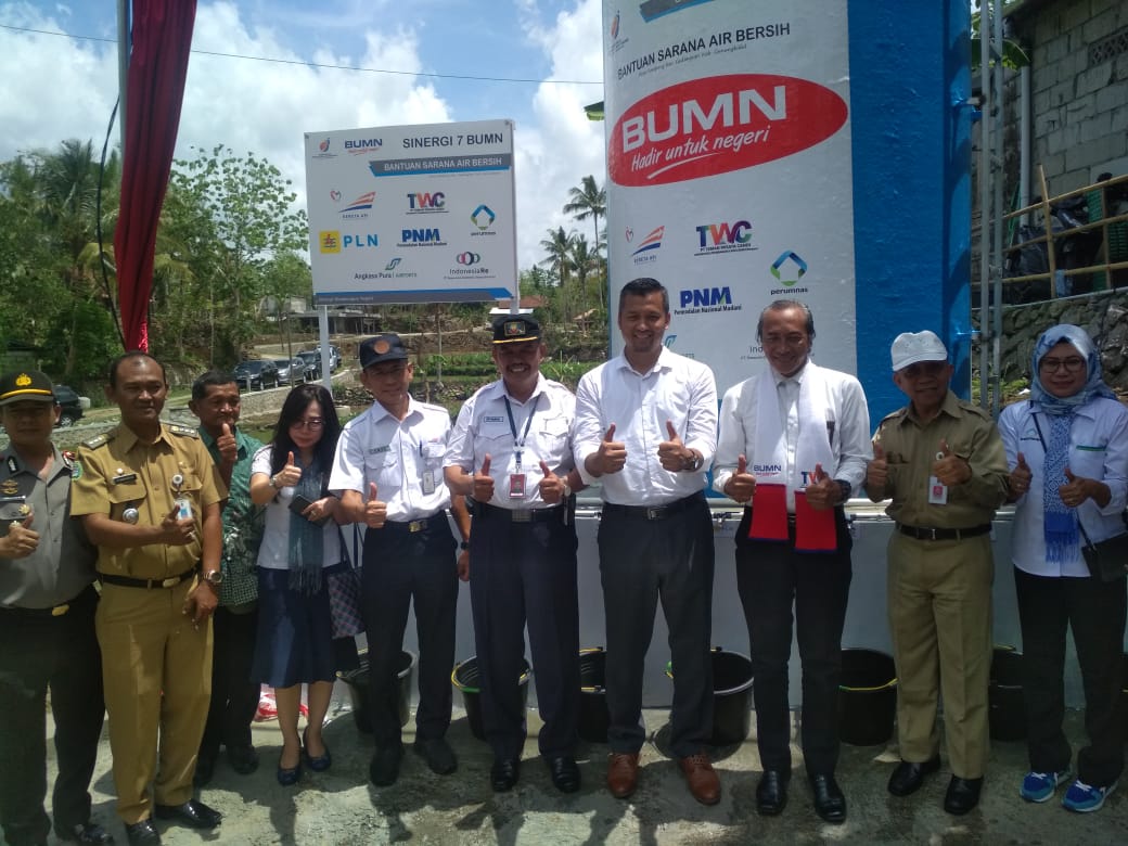 Manager Program Kemitraan dan Bina Lingkungan (PKBL) PT. KAI Agus Setijono mewakili 7 BUMN saat di wawancarai media di sela-sela peresmian bantuan sarana air bersih di Desa Sampang, Senin (09/22/19) mengatakan PT KAI saat ini mengandeng beberapa BUMN dalam mengatasi permasalahan kekeringan di Desa Sampang.
