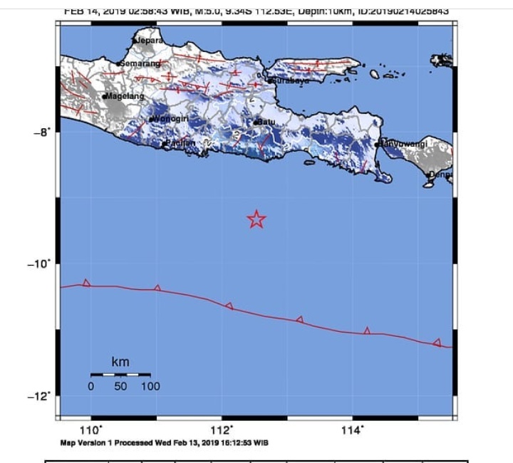 Meski di gempa dangkal di kedalaman 10 Km, gempa tidak berpotensi tsunami. Gempa sendiri dirasakan sebesar III MMI di Kab. Malang III MMI; Selopuro,Wlingi dan Kota Blitar II-III. (jen)