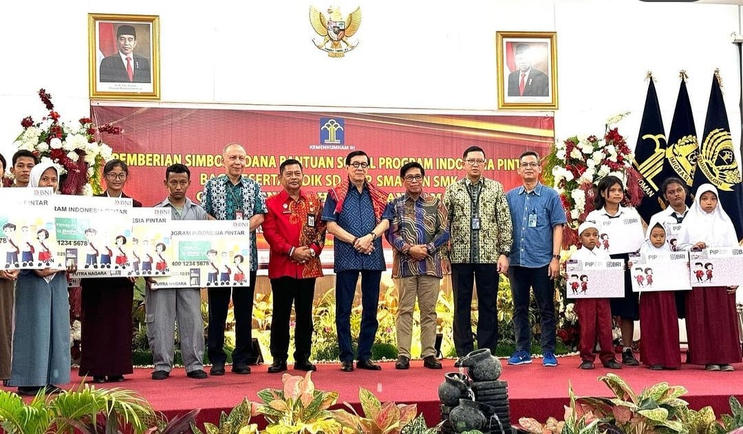 HARIANINDONESIA.ID – Menteri Hukum dan Hak Asasi Manusia Yasonna H Laoly menyerahkan bantuan dana pendidikan Program Indonesia Pintar (PIP) kepada siswa di Medan, Jumat 1 Desember 2023.