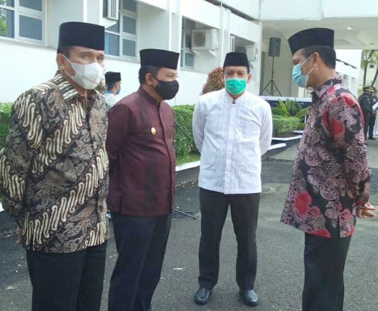 SHOLAT – Calon Gubernur Drs H Fakhrizal MH ikut mensholatkan jenazah alm IRDINANSYAH Tarmizi yang meninggal, Sabtu (19/9) malam. (foto : ist)