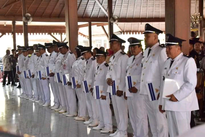 Harianindonesia.id – Banyumas, Pj Bupati Banyumas Hanung Cahyo Saputro melantik dan mengambil sumpah jabatan 15 kepala desa hasil pilkades serentak pada Selasa (31/10) di Pendopo Si Panji Purwokerto. Dalam kesempatan tersebut Pj Banyumas menitipkan beberapa pesan penting kepada para kades terlantik. Ia menuturkan perangkat desa harus bisa memahami kondisi wilayahnya masing-masing mulai dari data warga miskin, stunting, potensi wilayah dan data rawan bencana