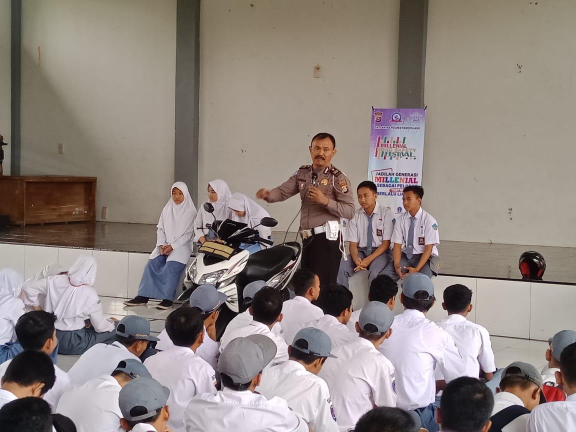 Kapolres Pandeglang melalui Irup IPDA TB Sanusi.SH.MH selaku panit 1 Binmas mengatakan selain sebagai pembina upacara bendera Kasatlantas beserta anggotanya melakukan kegiatan Sosialisasi tentang berlalu lintas agar para pelajar lebih tertib dalam menggunakan kendaraan bermotor yang mereka gunakan.