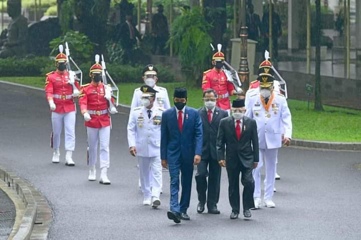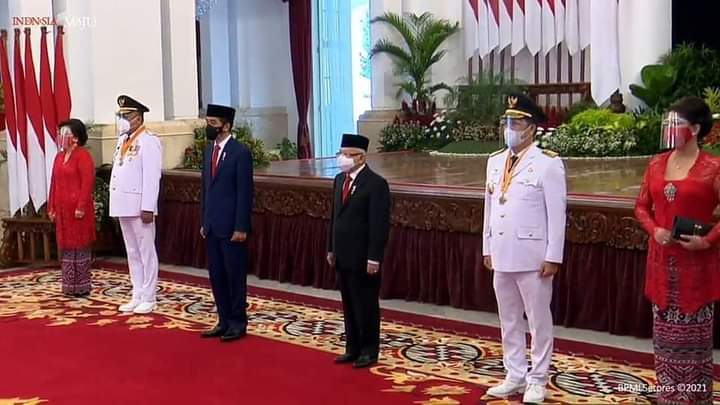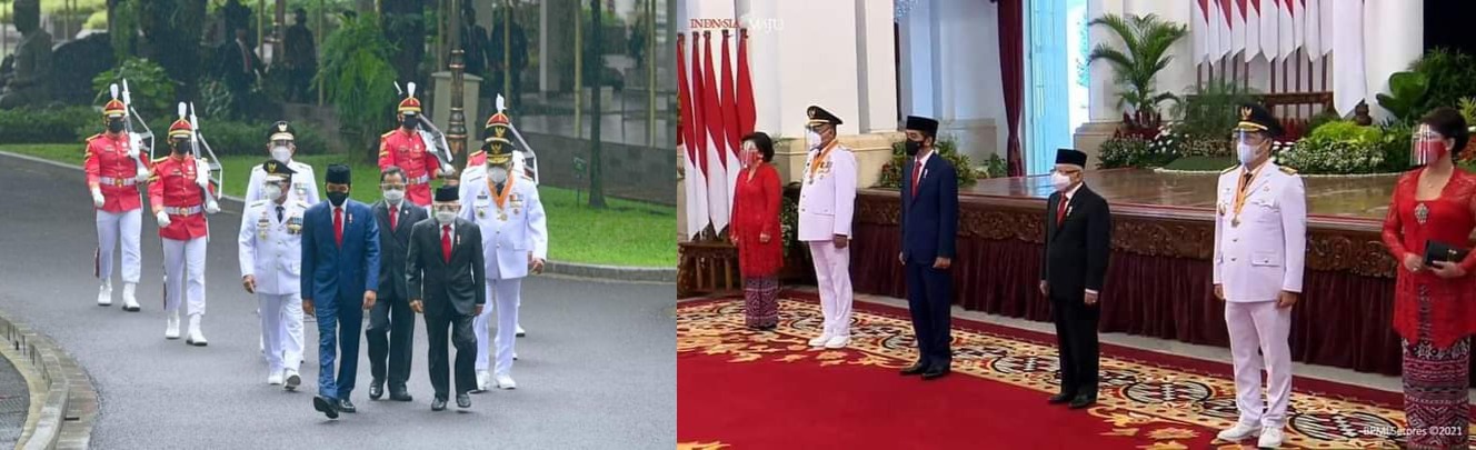 Acara pelantikan diawali penyerahan petikan Surat Keputusan Presiden oleh Presiden Jokowi kepada Gubernur dan Wakil Gubernur di Istana Merdeka, dengan menerapkan protokol kesehatan secara ketat.