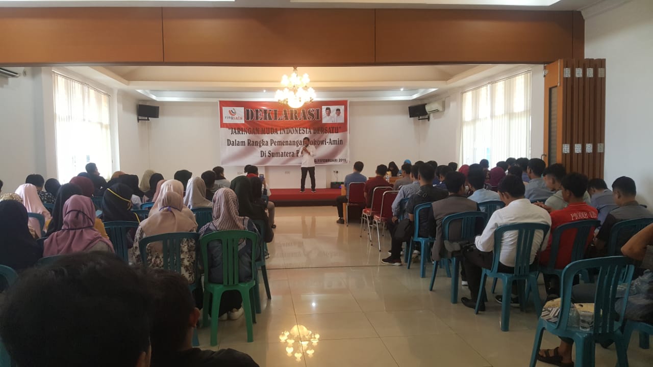 Kordinator Daerah Jaringan Muda Indonesia Bersatu, Laksanakan deklarasi dukungan untuk pemenangan Jokowi- Ma’ruf Amin untuk wilayah Sumbar. Bertempat di Hotel Sawahan, jalan Sawahan Timur Kota Padang, pada tanggal 11 Februari 2019.