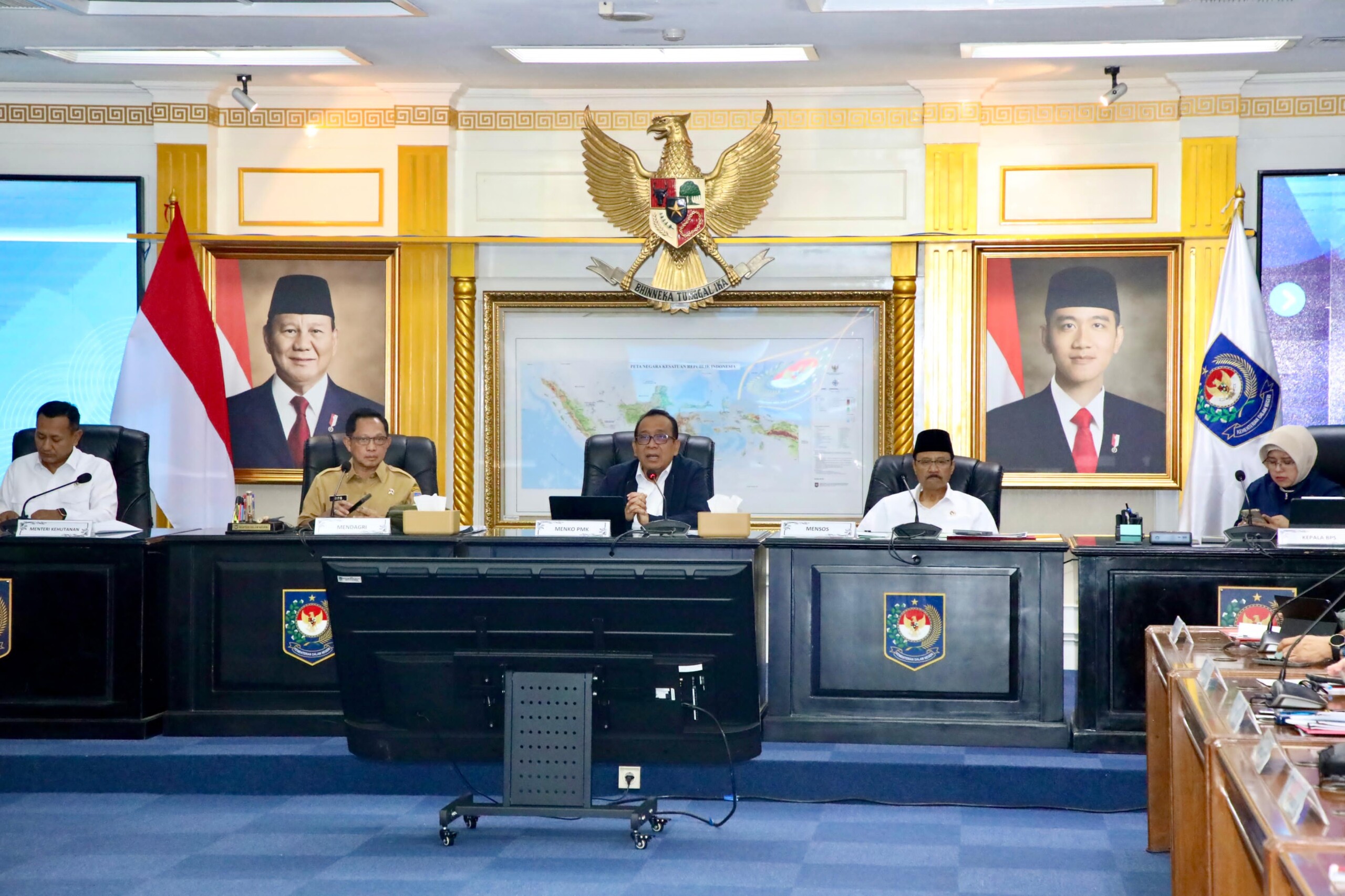 Suasana Rapat Satgas PRR yang dipimpin Tito Karnavian. Rapat memutuskan percepatan pendataan penyintas bencana di Sumatera untuk memudahkan penyaluran bantuan. (Foto : Puspen Kemendagri)