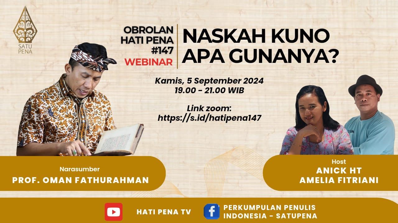 HARIANINDONESIA.ID – Perkumpulan Penulis Indonesia SATUPENA Kamis 5 September 2024 malam akan mendiskusikan manfaat naskah kuno dengan narasumber Oman Fathurahman, guru besar Filologi di Fakultas Adab dan Humaniora Universitas Islam Negeri (UIN) Syarif Hidayatullah Jakarta.