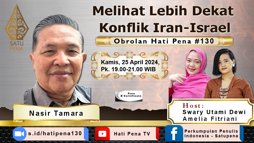 HARIANINDONESIA.ID – Perkumpulan Penulis Indonesia, SATUPENA menghadirkan wartawan senior Nasir Tamara untuk mendiskusikan konflik Iran melawans Israel yang membuat panas kawasan Timur Tengah.
