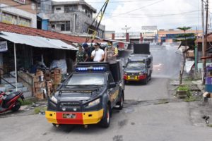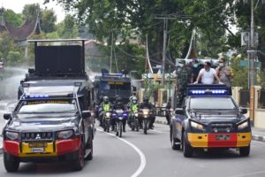 “Kegiatan masih dalam rangka upaya pencegahan penyebaran Virus Covid-19, tiga unit Water Canon Back Up dari Sat Brimob Polda Sumbar dikerahkan,” terang Kapolres Bukittinggi Akbp Iman Pribadi Santoso, Sik.M.H.