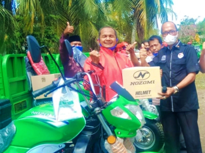 Penyerahan hari ini kata HM Nurnas bantuan tahap awal dari perjuangan aspirasi, disaksikan tokoh masyarakat dan aparat setempat, Bentor berpindah tangan ke 17 perwakilan kelompok tani.