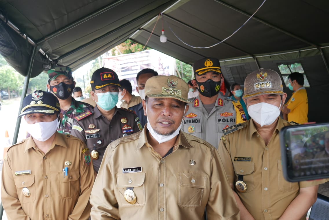 Wagub juga menyempatkan diri pada kunjungan hari ini untuk memeriksa surat keterangan negatif covid-19 dari angkutan logistik yang akan melintas pada pos penyekatan.
