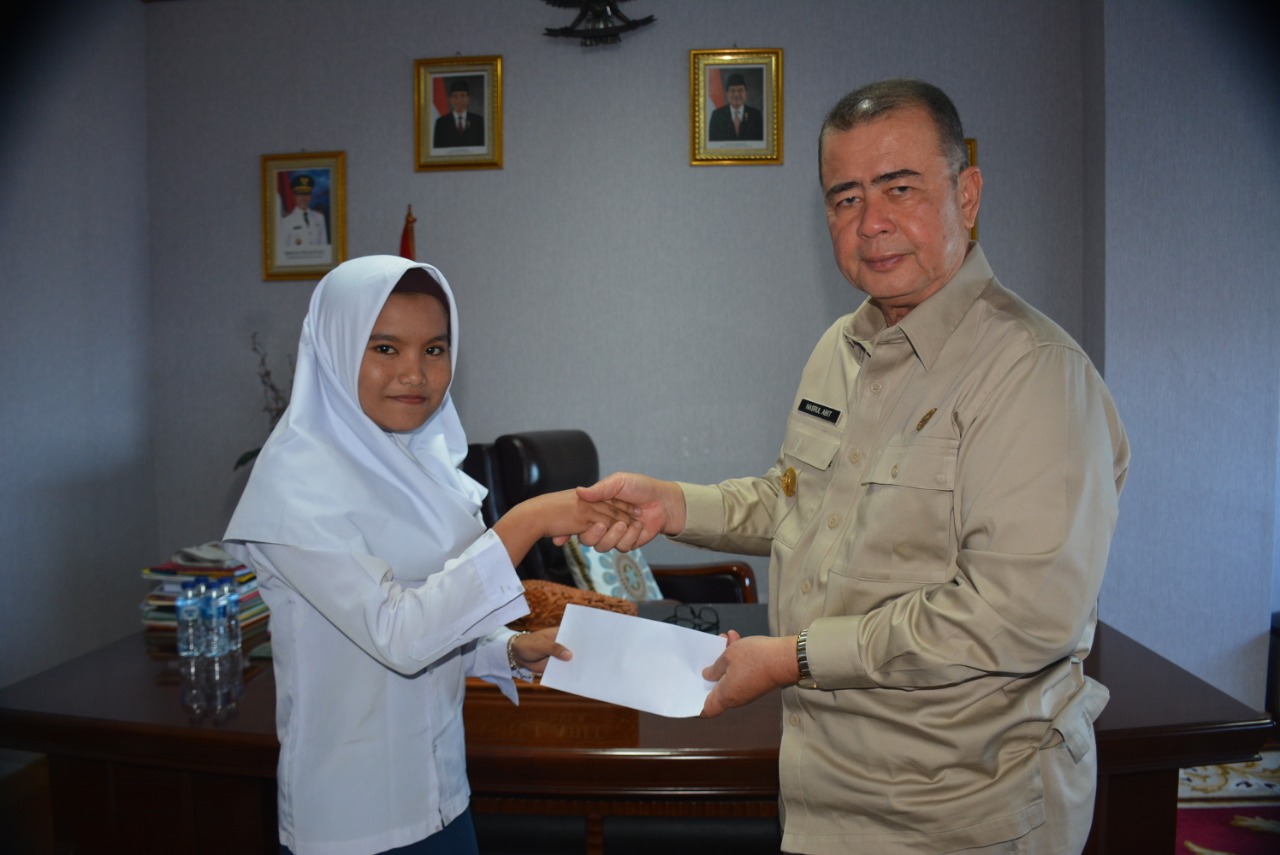 ” Kita dapat informasi pada senin malam (24/6/2019) melalui Whastaap group, kemudian dikoordinasikan dan pada subuh tadi, Putri dan guru pendamping langsung meminta Putri datang ke kantor Gubernur. Alhamdulillah, pagi ini Putri datang bersama gurunya. Dan tadi saya berpesan kepada Putri agar terus giat belajar mengejar cita cita dan nantinya jika berhasil dalam bersekolah bisa merubah nasib dia dan keluarganya” ujarnya.