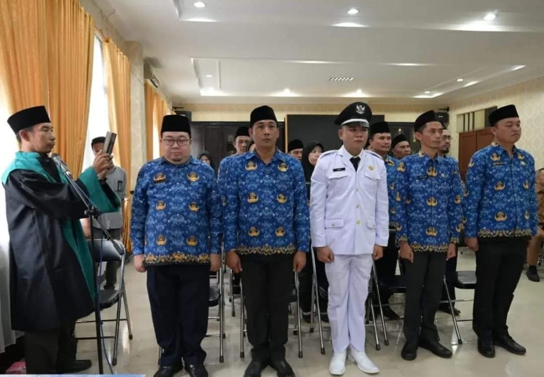 Pagaralam,harianindonesia.id – H Lusapta Yudha Kurnia melantik dan mengambil sumpah/janji terhadap 35 pejabat Jabatan Administrator, Pengawas dan Fungsional di lingkungan Pemkot Pagar Alam, bertempat di ruang rapat Besemah Due Setdako Pagar Alam, Jum’at siang (28/06/2024).