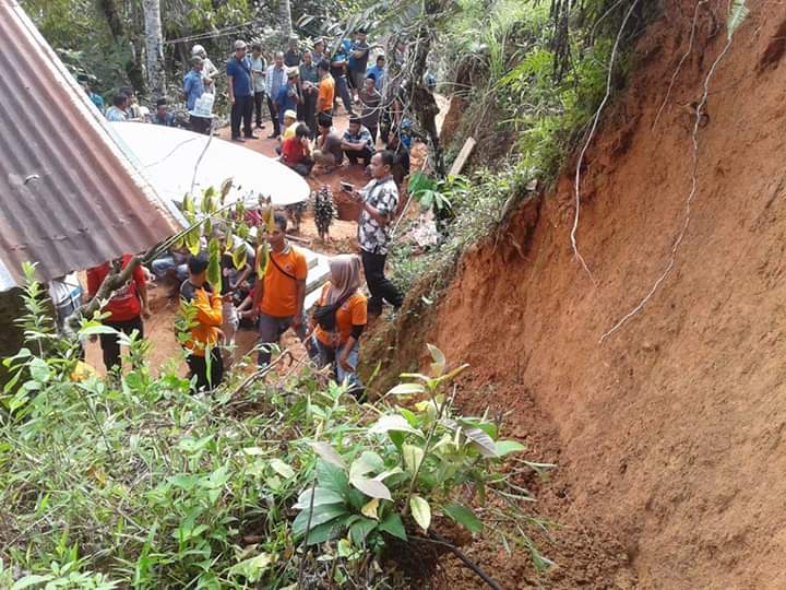Akibat kejadian bencana alam tanah longsor tersebut mengakibatkan satu rumah tertimbun tanah longsor milik Masihar, 45 tahun.