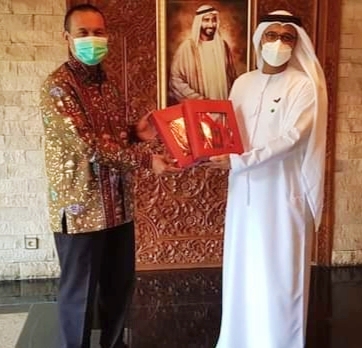 Genius Umar bertemu Dubes UEA didampingi sejumlah staf inti, antara lain Asisten I, Yaminurizal, Kadis Pariwisata dan Kebudayaan Dwi Marhen Yono, Kadis Kominfo Hendri, Kadis Perkim LH Syukri, dan Dinas PUPR ini merupakan kunjunga pertama di Kedutaan Besar UEA.