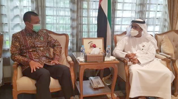 WAKO Genius Umar sedang berbicara serius dengan Duta Besar Uni Emirat Arab, Kamis (9/4/2021)