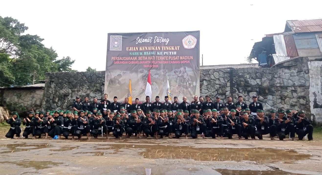 Jakarta– Ujian Kenaikan Tingkat (UKT) sabuk hijau ke sabuk putih Persaudaraan Setia Hati Terate gabungan Cabang Jakarta Selatan dan Cabang Depok sukses dilaksanakan pada Minggu (15/2/2026) di Ranting Pasar Minggu.