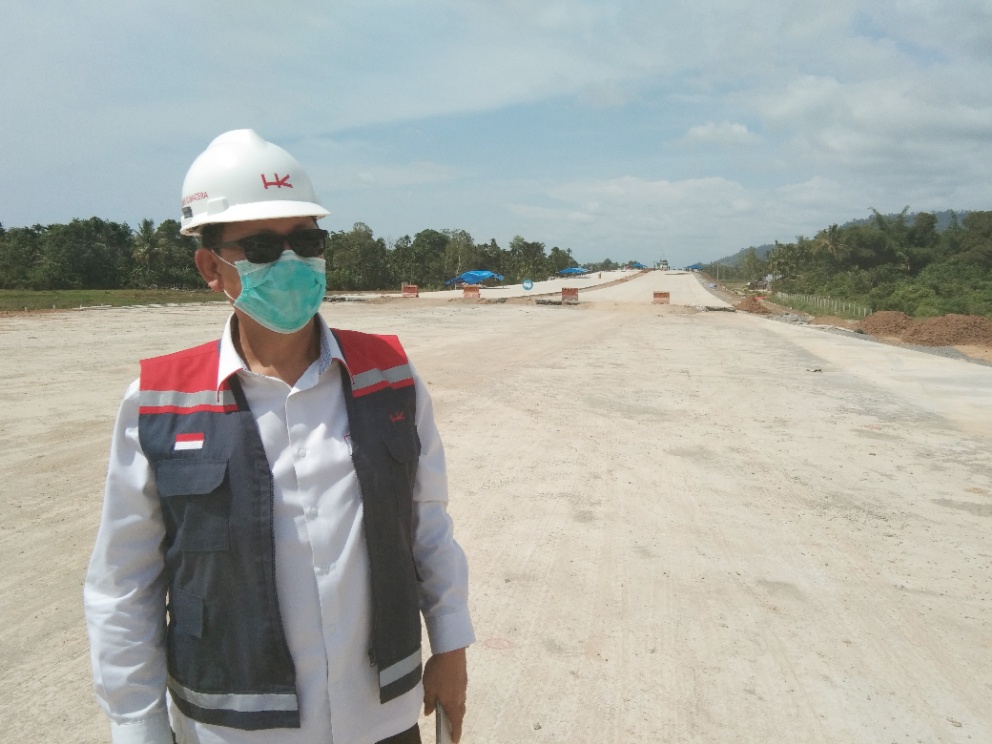 Project director Jalan Tol Padang Sicincin, PT HK, Marthen Robert Singal, dilokasi jalan tol Pdg Sicincin (foto : Awe/HI)