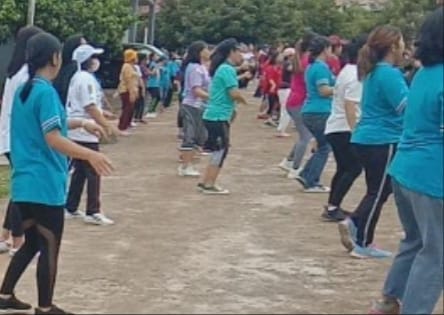 Terlihat antusias warga sekitar mengikuti kegiatan tersebut, suasana bulan ramadan tidak menurunkan semangat ratusan peserta senam tersebut.