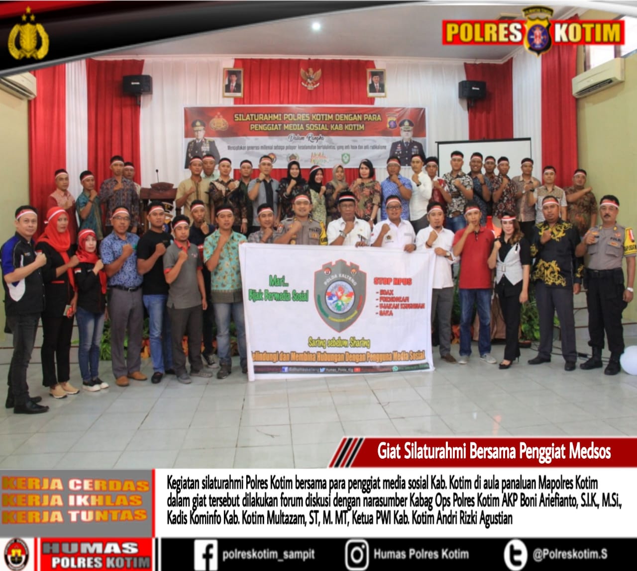 Kegiatan ini sekaligus silaturahmi antara Polres Kotim dengan para pegiat media sosial.” Diharapkan, gunakanlah Medsos ini dengan bijak dan Stop Hoax, Pornografi, Ujaran Kebencian dan Sara (HPUS),” demikian.