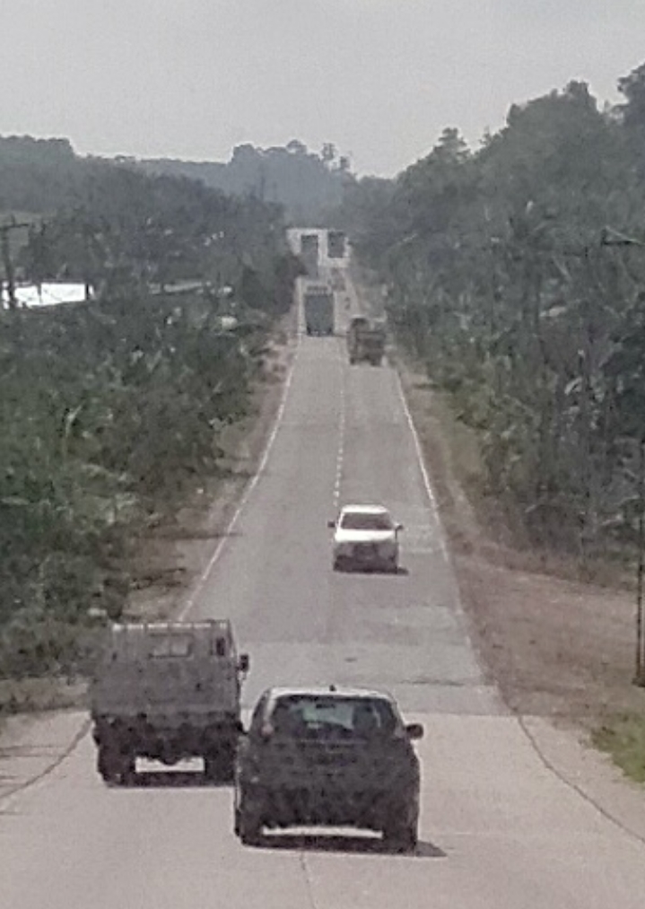Suasana di jalan lintas Timur Sumatera yang didominasi oleh angkutan truk logistik. (Foto : Awe/HI)