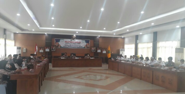 Tamiang Layang – Pelepasan Kafilah Lembaga Seni Qasidah Indonesia (LASQI) Kabupaten Barito Timur (Bartim) mengikuti Festival Seni dan Qasidah ke IX tingkat Provimsi Kalimantan Tengah, di ruang rapat Bupati Bartim, Rabu (26/10/2022) pagi.