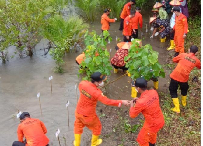 Kegiatan penanaman bakau ini merupakan rangkaian dari Hari Ulang Tahun (HUT) Basarnas ke-50 pada tanggal 28 Febuari 2022.