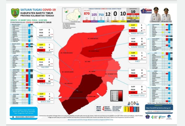 Hal tersebut dikatakan Ketua Satuan Tugas (Satgas) Penaganan Covid-19 Kabupaten Barito Timur, Ampera AY Mebas melalui Ketua Bidang Komonikasi Publik Bartim, Dwi Aryanto, juga selaku Kepala Dinas Komunikasi, Informatika, Persandian dan Statistik Kabupaten Barito Timur. Sabtu (27/02/2021).
