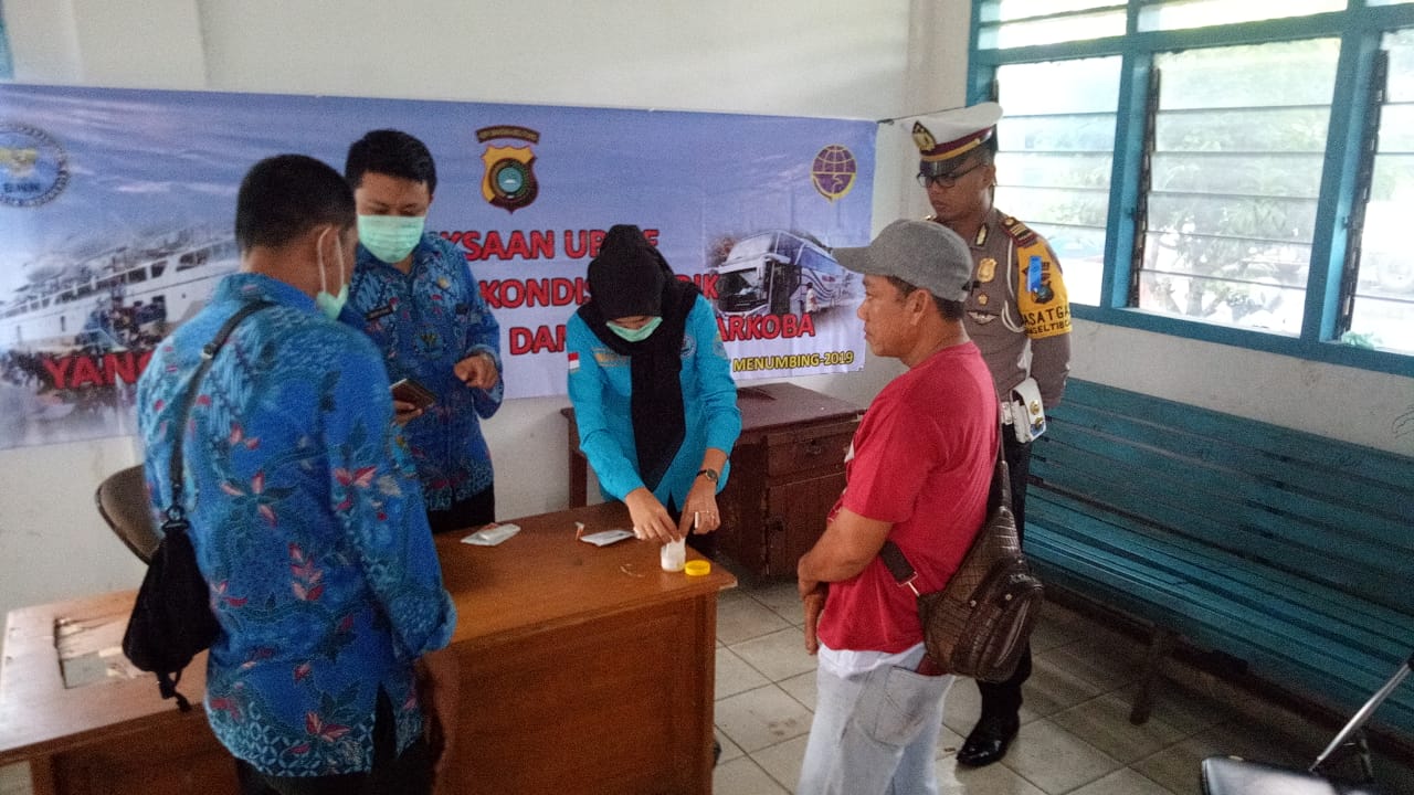 PANGKALPINANG, harianindonesia.id – Badan Narkotika Nasional Kota (BNNK) bersama Satuan Narkoba Polres Pangkalpinang melakukan pemeriksaan urine di Terminal Kampung Keramat, Kecamatan Rangkui dan Pelabuhan Pangkalbalam Pangkalpinang, Babel, Sabtu (1/6/2019) pagi.