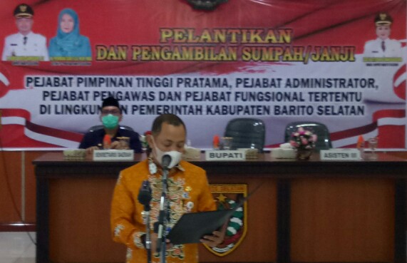Buntok, harianindonesia.id – Pelantikan dan pengambilan sumpah atau janji oleh Bupati Barito Selatan, H. Eddy Raya Samsuri kepada Pejabat Struktural dan Direktur Perusahaan Daerah Danum Belum serta Badan Pengawas Perusahaan Daerah Danum Belum di lingkungan Pemerintah Daerah Kabupaten Barito Selatan Tahun 2021, di aula Sekda Barsel, Jum’at (04/06/2021).