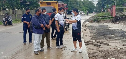 Dengan berjalan kaki, Ampera AY Mebas didampingi Kepala Dinas PUPR Bartim, Yumail J. Paladuk, Kepala Diskominfosantik Bartim, Drs. Dwi Aryanto dan salah satu pengawas dari CV. Putra Amandit, Erman Edy, Bsc.