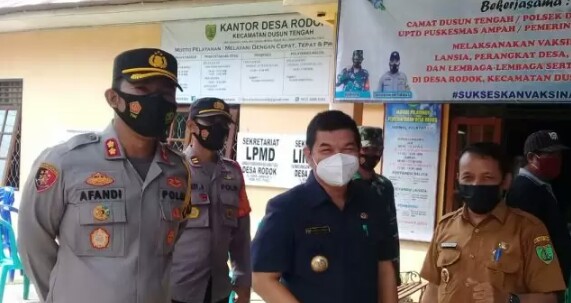 Tamiang Layang, harianindonesia.id – Dalam pemberian vaksinasi kepada lansia dan pelayanan publik secara gratis, Bupati Kabupaten Barito Timur (Bartim), Ampera AY Mebas SE MM dan Kapolres Bartim AKBP Afandi Eka Putra, SH, SIK, MPict, bersama rombongan kunjungi langsung warga setempat di Desa Rodok dan Desa Natampin Kecamatan Dusun Tengah, Selasa (15/6/2021).