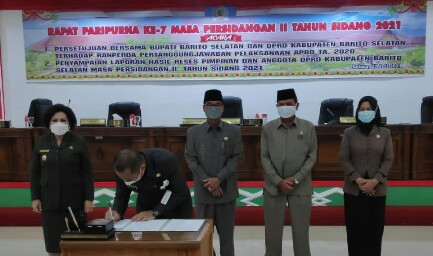 Kegiatan tersebut dengan acara persetujuan bersama Bupati Barsel dan DPRD Barsel terhadap rancangan peraturan daerah (Raperda) pertanggungjawaban pelaksanaan APBD tahun 2020 dan penyampaian laporan hasil reses pimpinan dan anggota DPRD Barsel masa persisangan II tahun sidang 2021, ucap Farid Yusran usai memimpin rapat, Selasa (27/07/2021).