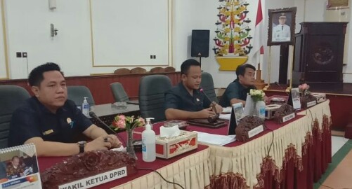 “Nampak hadir dalam rapat, Wakil Bupati, FKPD, Sekda, Asisten, Kepala OPD dan undangan lainnya, rapat didampingi Ketua I DPRD Ariantho S Muler dan Wakil Ketua II DPRD, Depe, serta diikuti oleh anggota yang lainnya”.