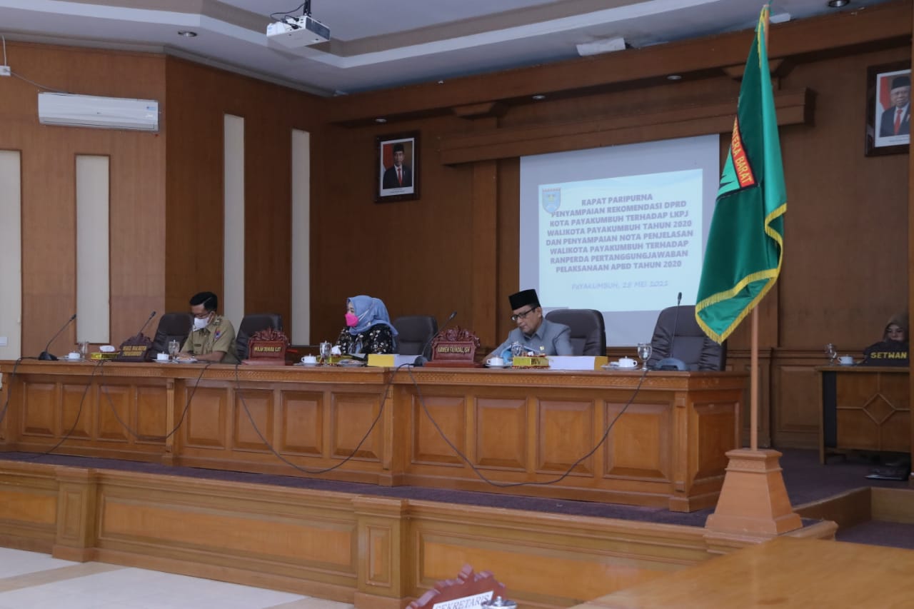 Payakumbuh, harianindonesia.id – Dalam Rapat Paripurna yang digelar di Ruang Sidang Rapat Paripurna DPRD Kota Payakumbuh, Selasa (25/5), digelar dua acara yakni Penyampaian Rekomendasi DPRD Terhadap LKPJ Wali Kota Payakumbuh Tahun 2020 dan Penyampaian Nota Penjelasan Wali Kota Payakumbuh Terhadap Ranperda Pertanggungjawaban Pelaksanaan APBD Tahun 2020.