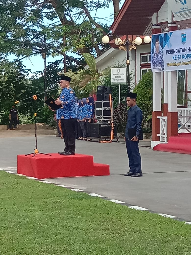 Sekretaris Daerah Kabupaten Kepulauan Mentawai, Rinaldi pimpin upacara dalam rangka memperingati Hari Ulang Tahun (HUT) ke-51Korps Pegawai Republik Indonesia (KORPRI), Selasa (29/11) di lapangan kantor Bupati.