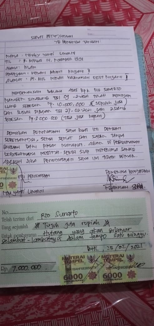 “Rio Sunarto mengakui, bahwa benar ada meminta uang sejumlah tersebut, dan sudah di bayar sebanyak Rp. 3.000 000. (Tiga Juta Rupiah) dan bertanggung jawab untuk membayarkan sisanya sebanyak Rp. 7.000 000.(Tujuh Juta Rupiah) lagi, dan sebagai bentuk pertanggung jawaban tersebut telah di buatkan Kwitansinya di atas meterai 6000,” tambah Ngadiman