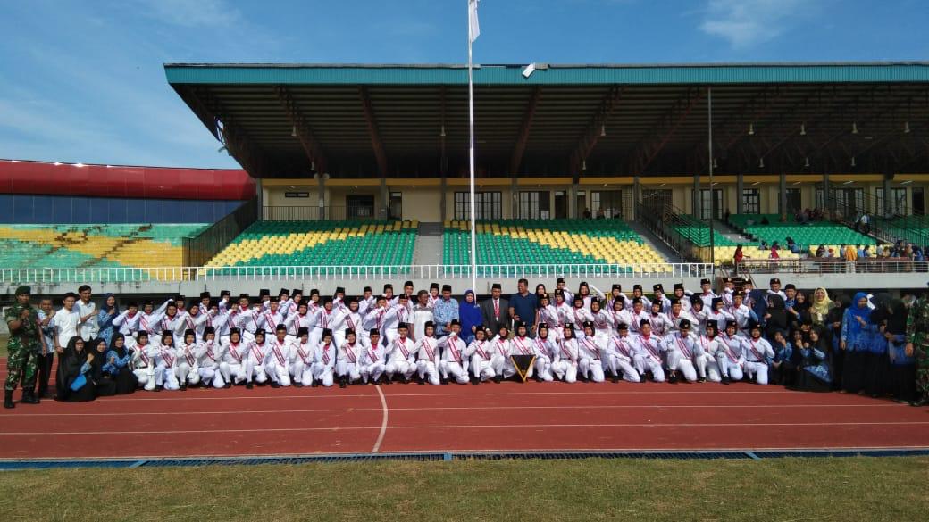 Warga Masyarakat sangat antusias mengikuti upacara penaikan Bendera oleh pasukan Paskibraka dari SMP N I Bangkinang kota tersebut yang dilaksanakan di Stadion Tuanku Tambusai Bangkinang kota.