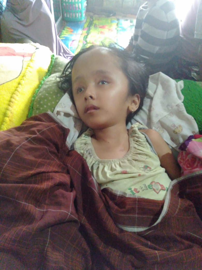 Ananda Nia Fitriani sudah 13 tahun menderita Hydrocephalus, dan terbaring di tempat tidur, dengan kondisi sangat memprihatinkan.