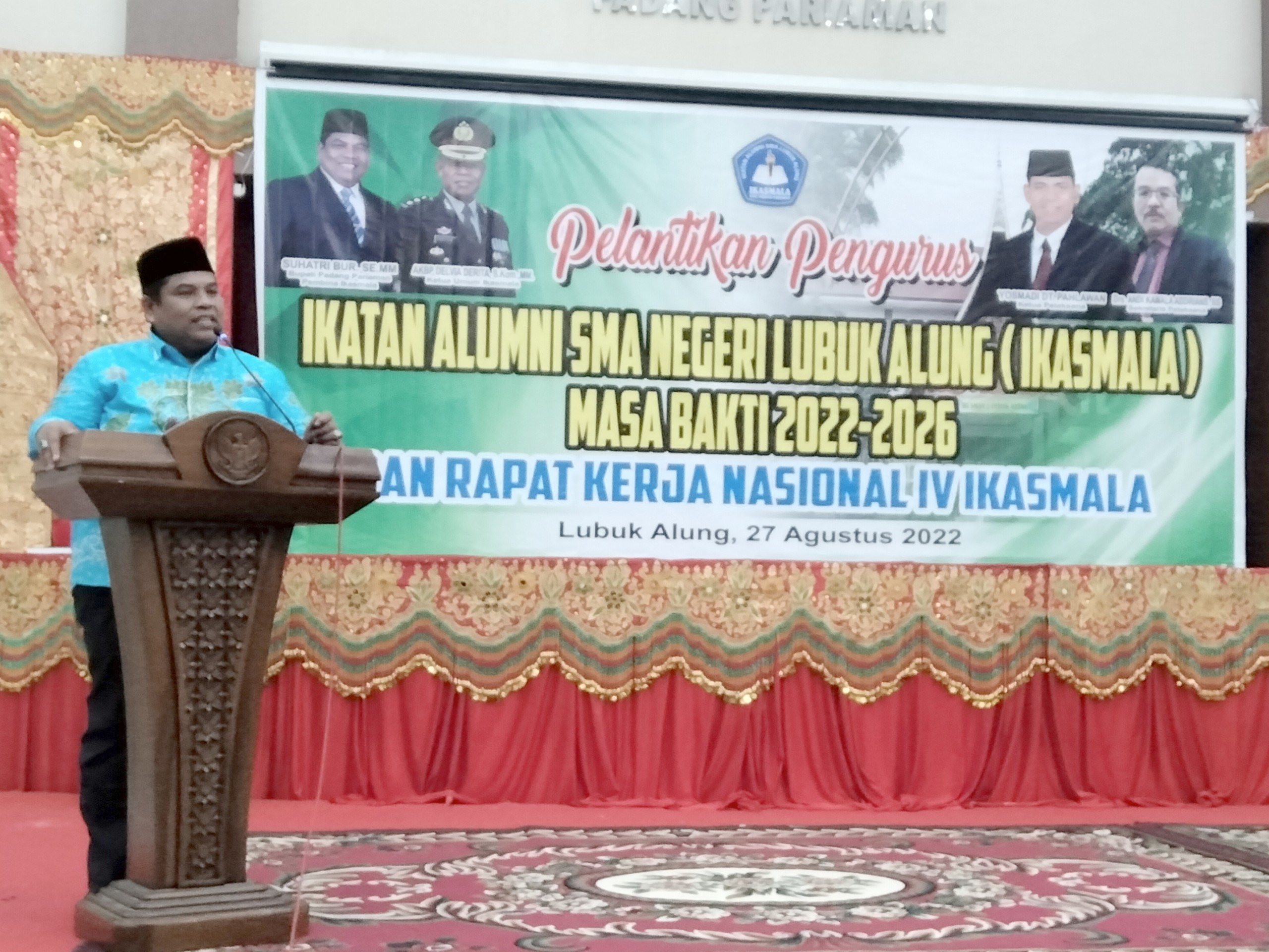 Suhatri saat menyampaikan sambutannya mengaku bahwa dirinya sebagai Bupati Padang Pariaman adalah exofficio Ketua Dewan Pembina DPP IKASMALA.