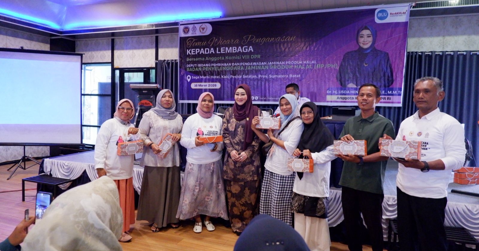 PESISIR SELATAN (16/3/2026) – Lisda Hendrajoni, anggota Komisi VII DPR RI, mengimbau para pelaku UMKM di Kabupaten Pesisir Selatan (Pessel), Sumatera Barat, untuk membangun Ekosistem Halal, upaya peningkatan usaha melalui sertifikat halal.