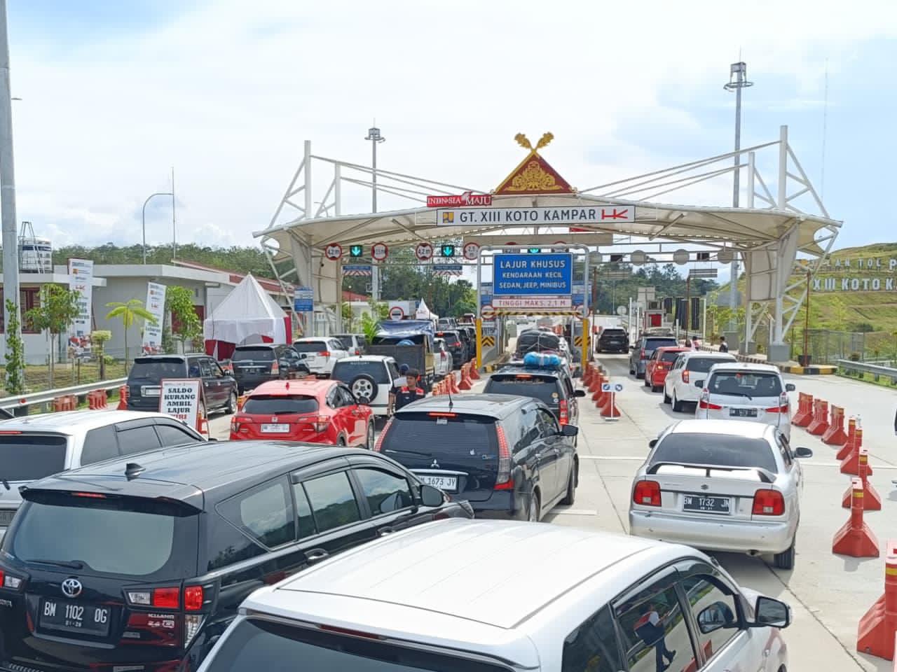 Foto kepadatan kendaraan di gerbang tol Pekanbaru – Kampar. Pengendara pemudik asal Sumatera sudah mulai “pulkam” untuk merayakan lebaran 2026. (Foto : Humas Regional Sumbagteng)